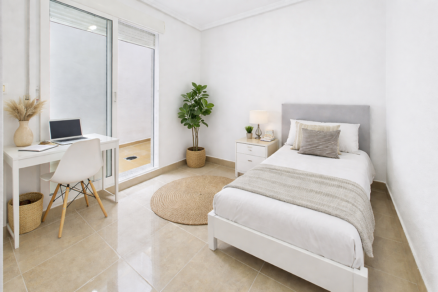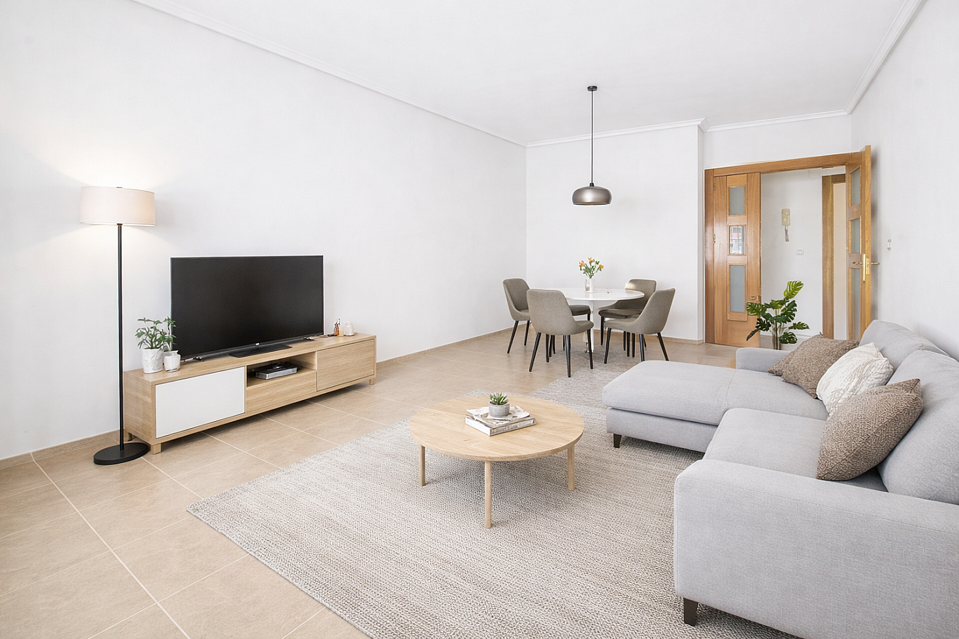 Located in the heart of Pilar de la Horadada, this ground floor apartment offers both comfort and convenience in a central and accessible setting. The entrance to the building is easily accessible via a gently sloped ramp, leading directly to the hallway—where the first door on the right welcomes you into this beautifully presented home.