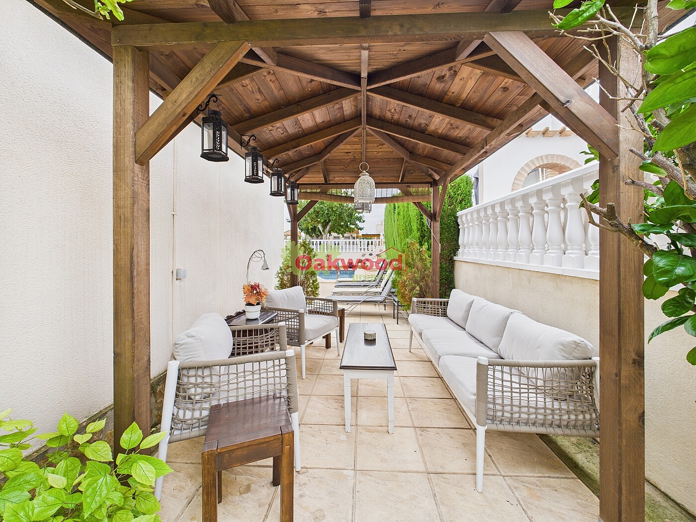 Nestled in the highly sought-after area of Pinar de Campoverde, this three-bedroom detached villa offers the perfect blend of comfort, privacy, and Mediterranean lifestyle. Set on a generous plot with beautifully manicured gardens, this home is designed for relaxed outdoor living, featuring hidden seating areas, a large private swimming pool, and off-road parking.