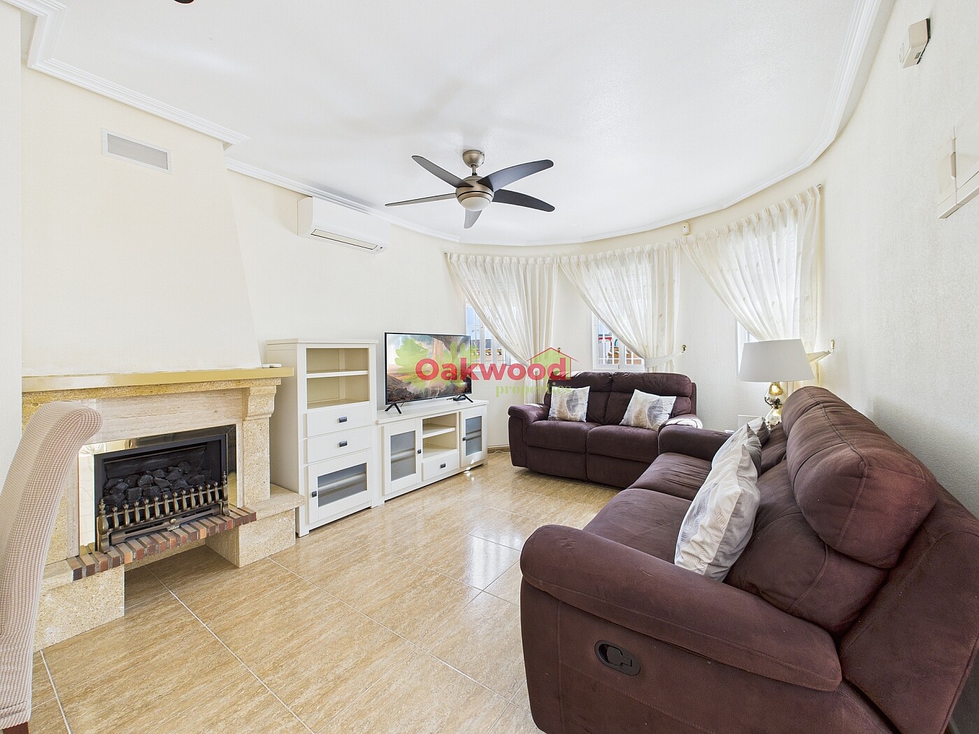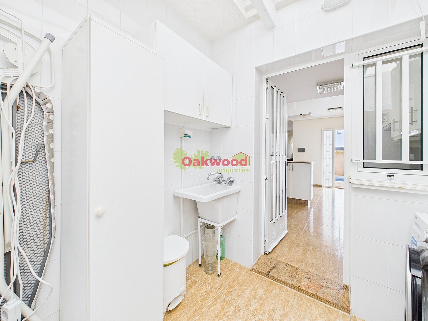 Bij binnenkomst via de veranda wordt u verwelkomd in een lichte en ruime woonkamer met open indeling, voorzien van een sfeervolle stenen open haard, ingebouwde airconditioning en grote ramen die het geheel vullen met natuurlijk licht. De moderne, op maat gemaakte keuken sluit naadloos aan op de woonkamer en is volledig uitgerust, met een aparte bijkeuken die toegang biedt tot de achtertuin.