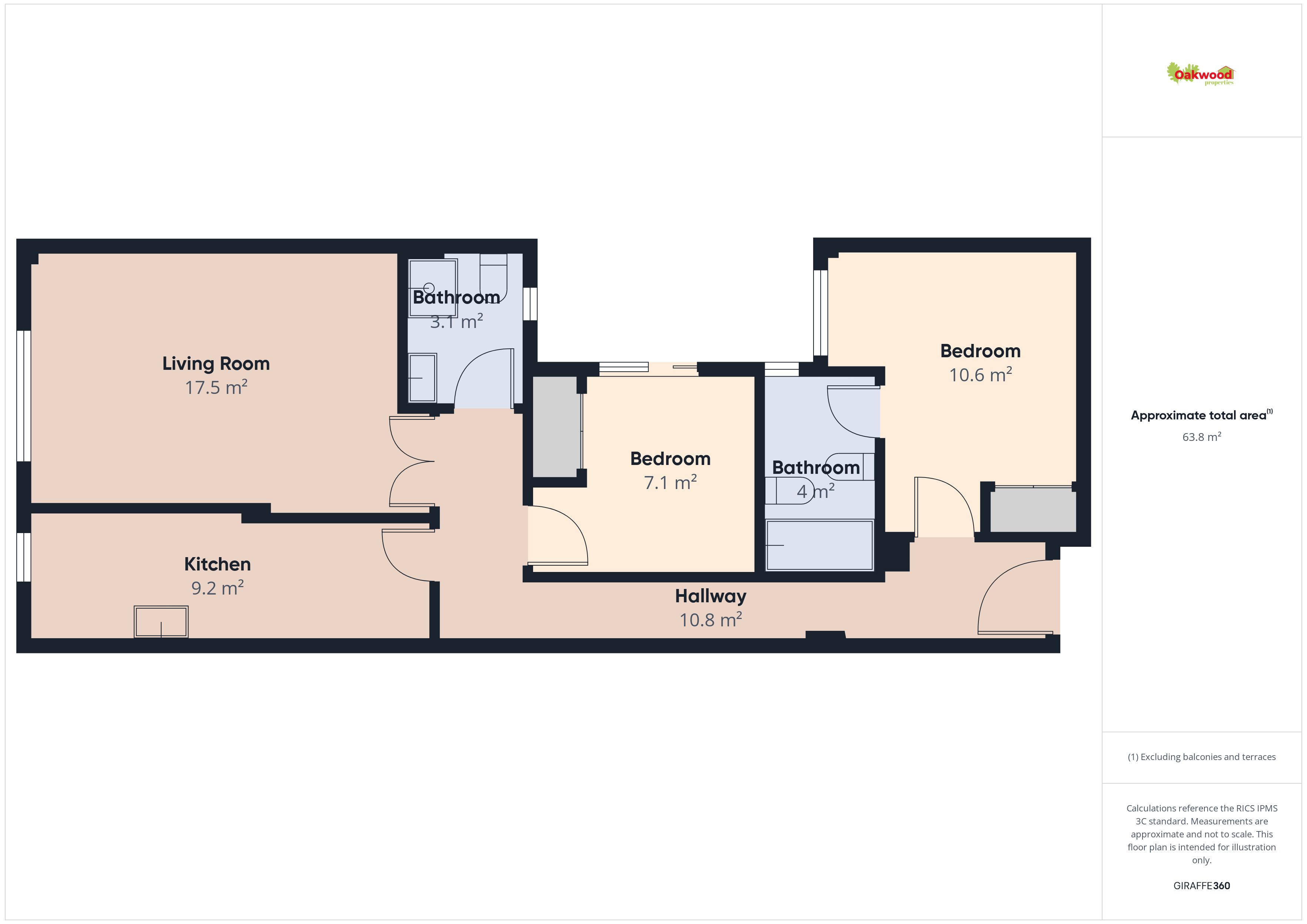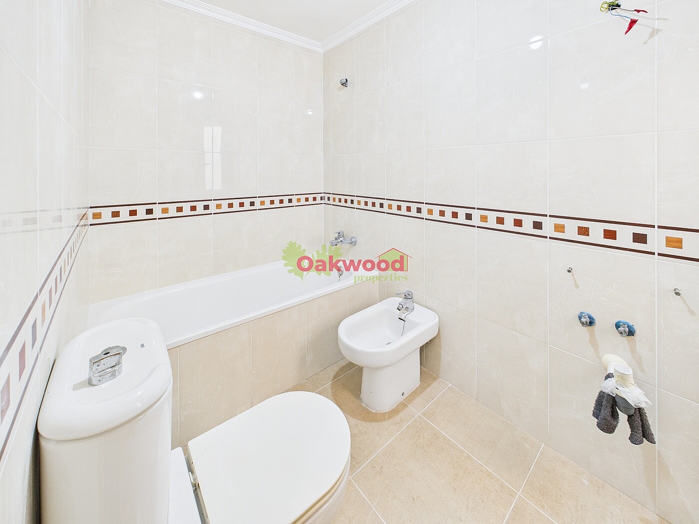 Binnen beschikt het appartement over een ruime woon- en eetkamer, gescheiden van de hal door een stijlvolle deur voor extra privacy. De aparte, volledig ingerichte keuken biedt praktische ruimte voor dagelijks gebruik. De woning bestaat uit twee goed ingedeelde slaapkamers: een master met en-suite badkamer en een tweede tweepersoonsslaapkamer, beide voorzien van ingebouwde kasten. Aan het einde van de hal bevindt zich een tweede gezinsbadkamer. De tweede slaapkamer heeft bovendien directe toegang tot een privé binnenterras — perfect voor een rustig kopje koffie of wat frisse lucht.