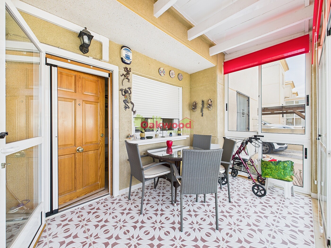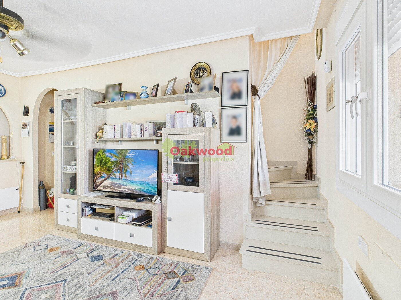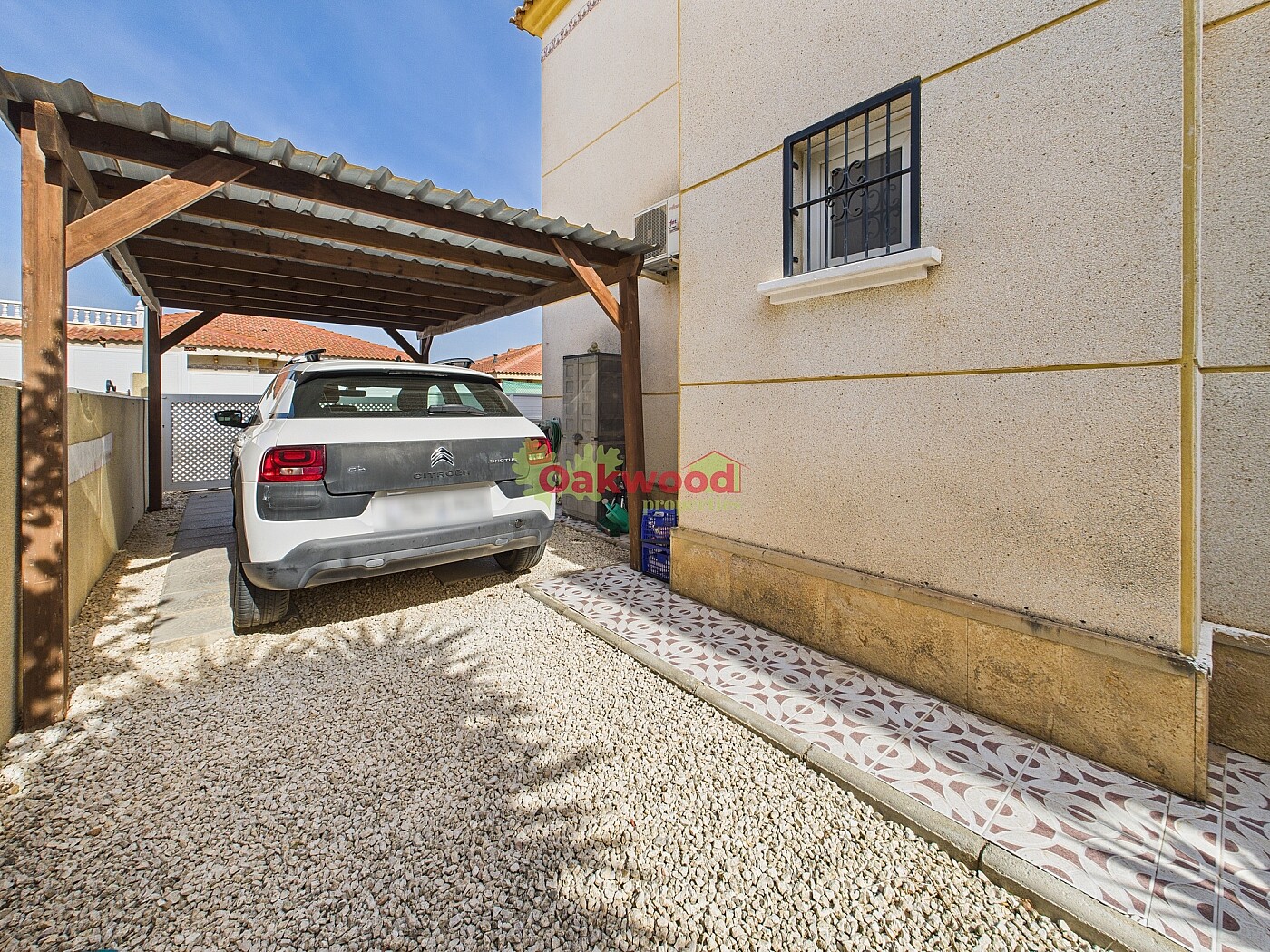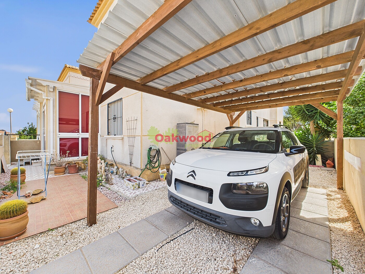 Gelegen op een toplocatie in het gewilde Pinar de Campoverde, op slechts een korte wandeling van alle lokale voorzieningen, biedt deze charmante halfvrijstaande quadwoning zowel comfort als gemak. De woning ligt op een perceel met een privé tuin en een overdekte parkeerplaats, en verwelkomt u direct met een glazen veranda – de perfecte plek om ’s ochtends van uw koffie te genieten of ’s avonds buiten te dineren.