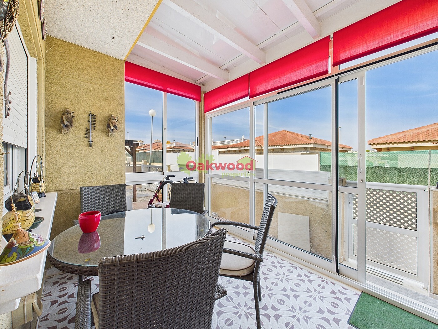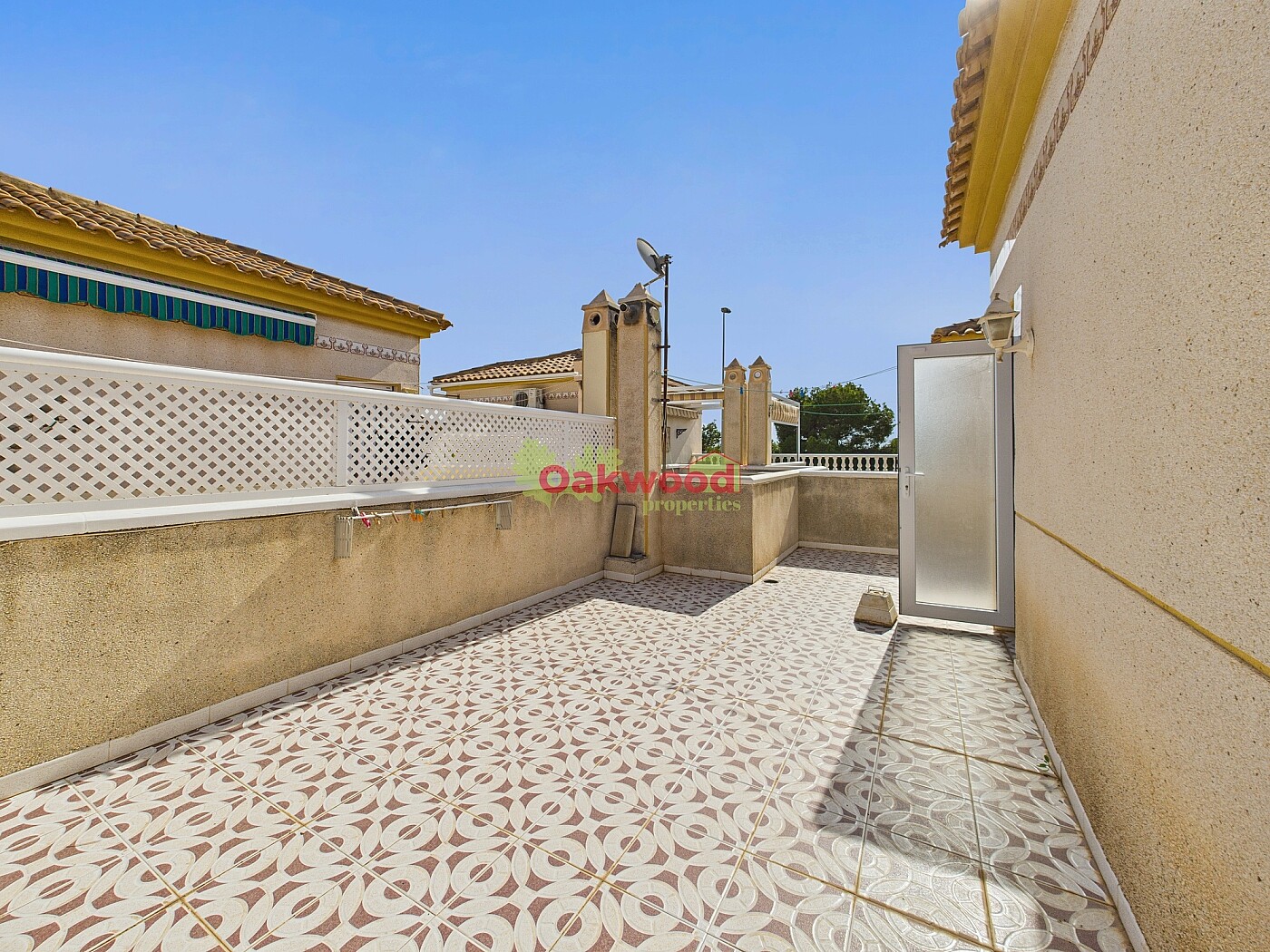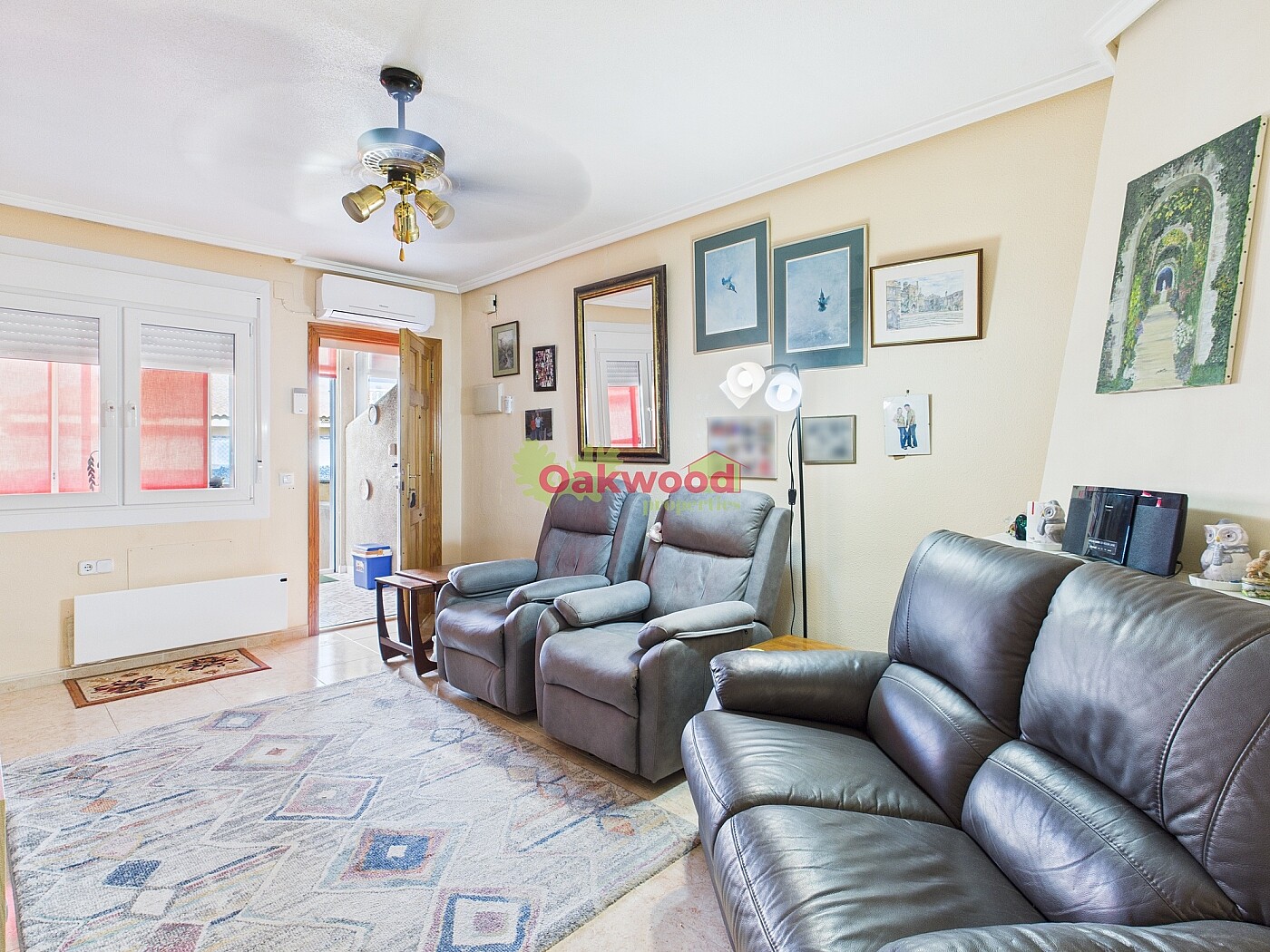 Gelegen op een toplocatie in het gewilde Pinar de Campoverde, op slechts een korte wandeling van alle lokale voorzieningen, biedt deze charmante halfvrijstaande quadwoning zowel comfort als gemak. De woning ligt op een perceel met een privé tuin en een overdekte parkeerplaats, en verwelkomt u direct met een glazen veranda – de perfecte plek om ’s ochtends van uw koffie te genieten of ’s avonds buiten te dineren.