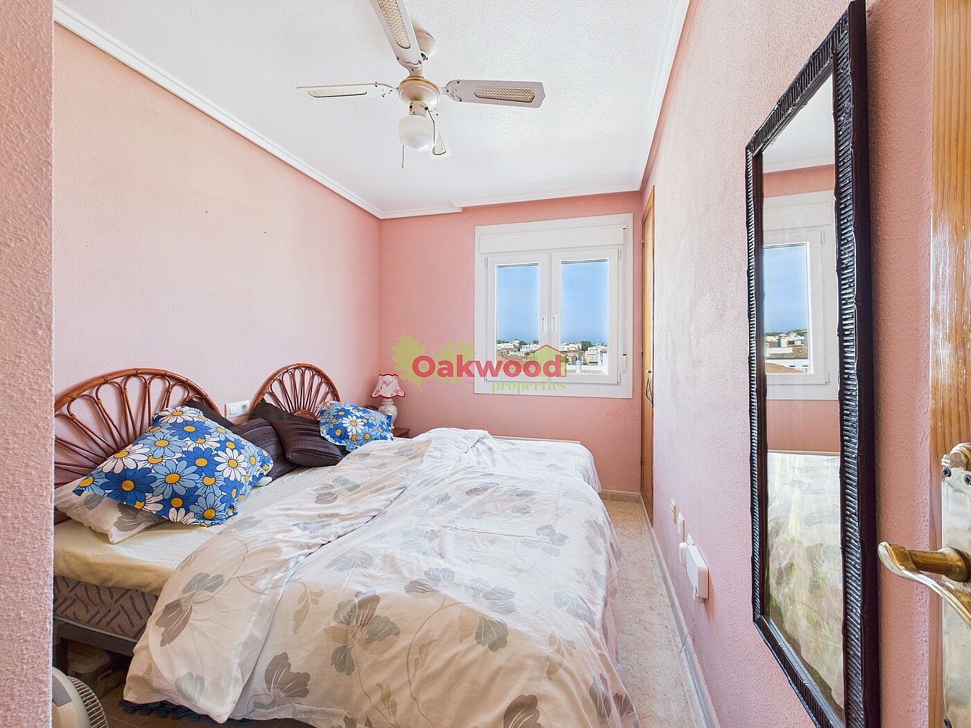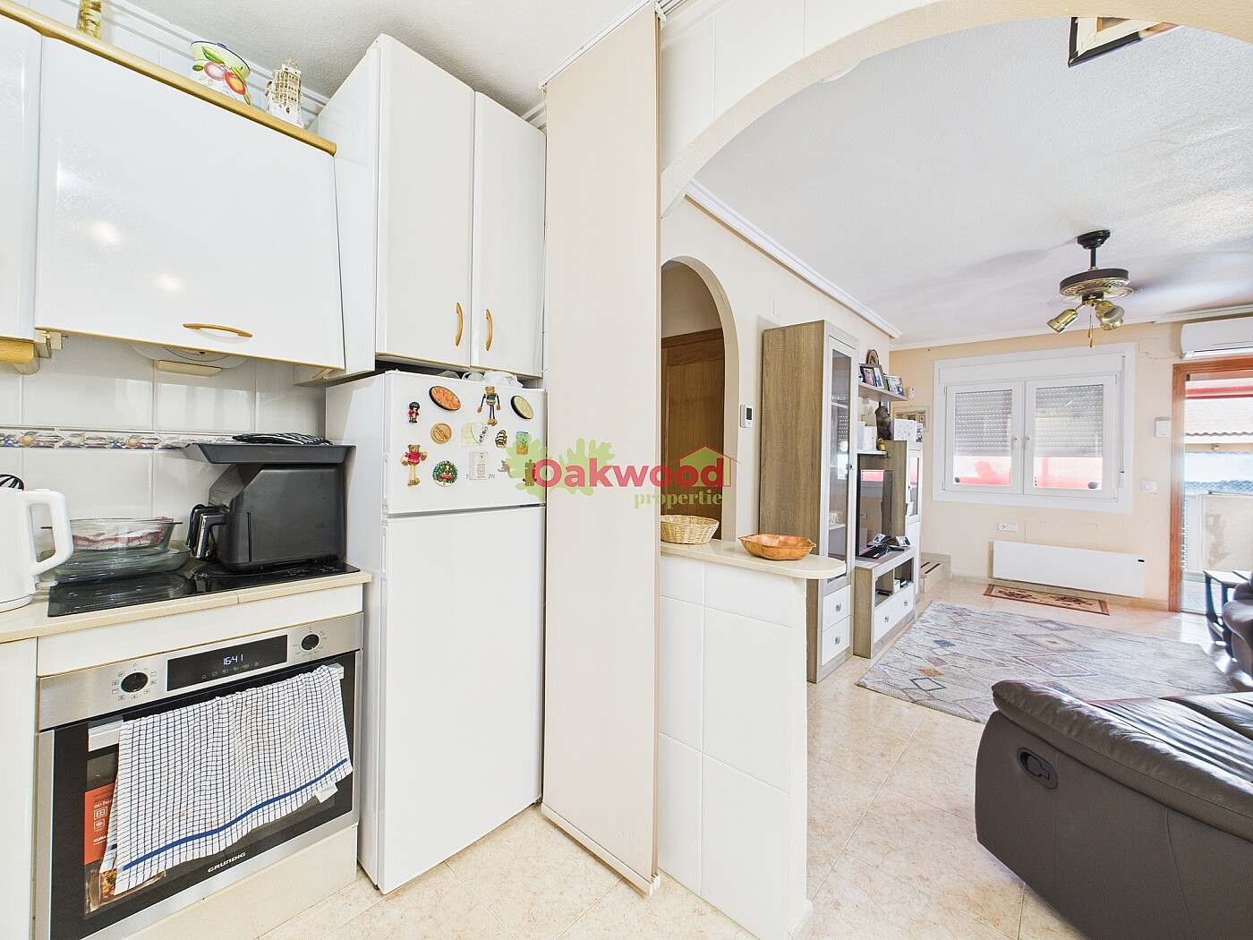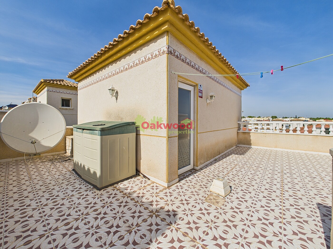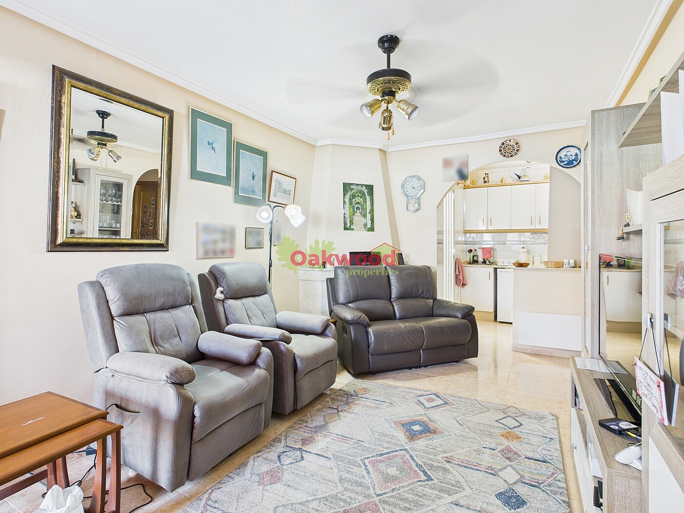 Gelegen op een toplocatie in het gewilde Pinar de Campoverde, op slechts een korte wandeling van alle lokale voorzieningen, biedt deze charmante halfvrijstaande quadwoning zowel comfort als gemak. De woning ligt op een perceel met een privé tuin en een overdekte parkeerplaats, en verwelkomt u direct met een glazen veranda – de perfecte plek om ’s ochtends van uw koffie te genieten of ’s avonds buiten te dineren.
