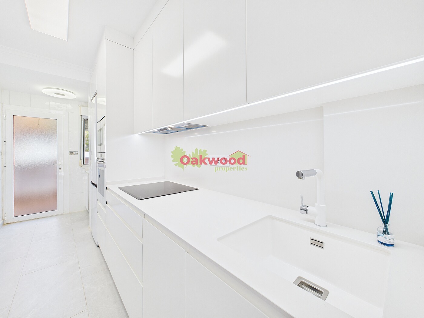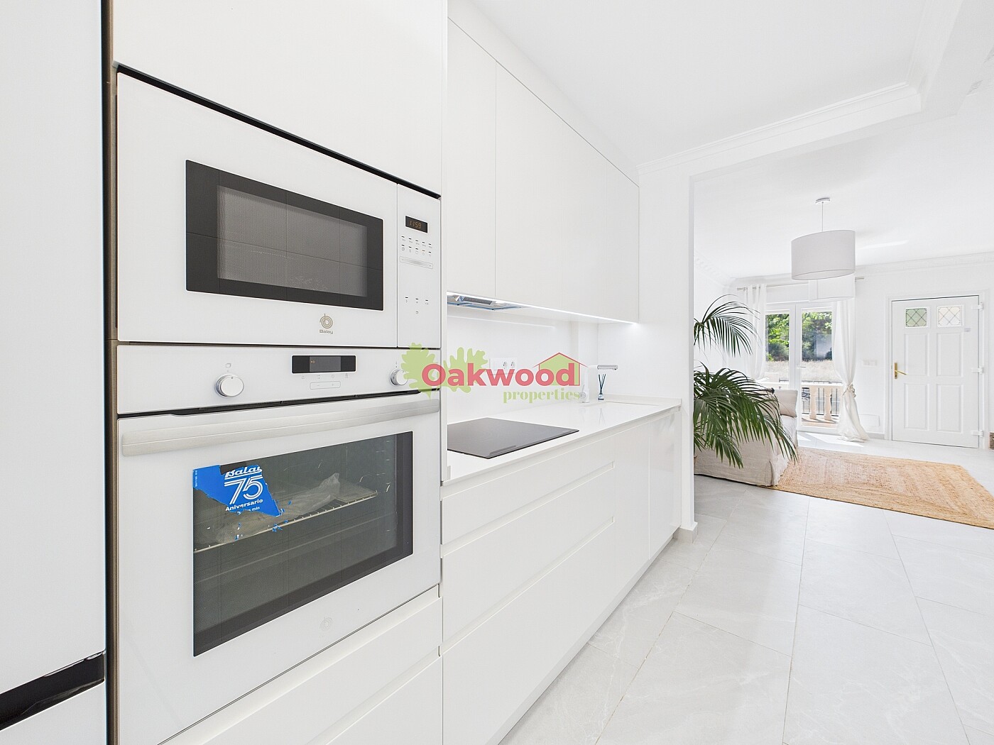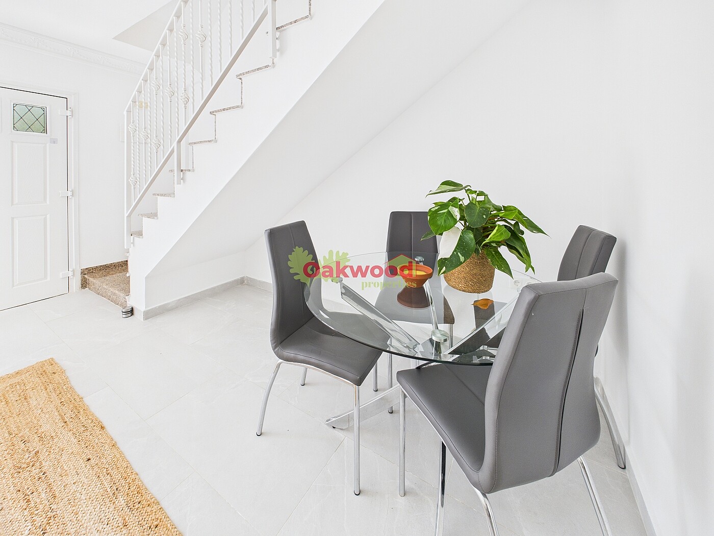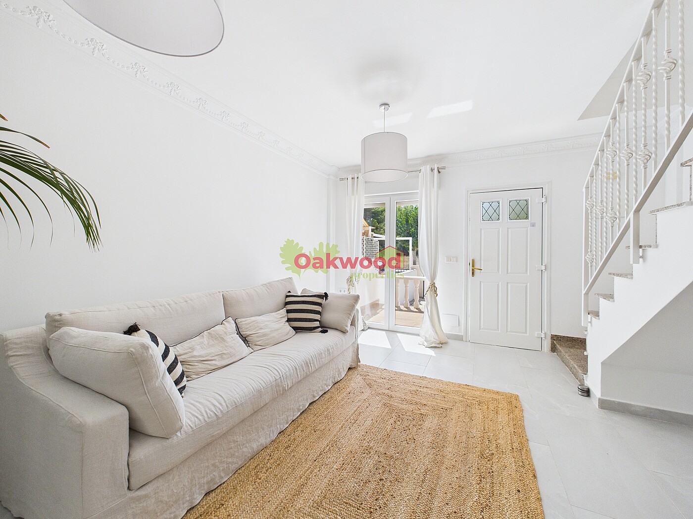 Verspreid over drie verdiepingen beschikt het huis over een volledig gemoderniseerde keuken en een lichte open woon-/eetkamer. Grote schuifdeuren geven toegang tot het voorterras en zorgen voor veel natuurlijk licht en een mooie verbinding tussen binnen en buiten – ideaal om te ontspannen of gasten te ontvangen.