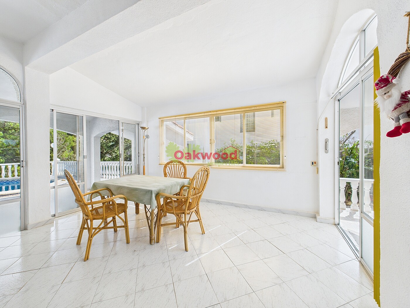 De villa ligt op een royaal perceel van 812 m², met een eigen oprit die leidt naar een grote tuin vol volwassen bomen. In de tuin vindt u ook een kleine casita, ideaal voor opslag, evenals toegang tot een ruime kelderverdieping die uitstekende extra opslagmogelijkheden biedt.
