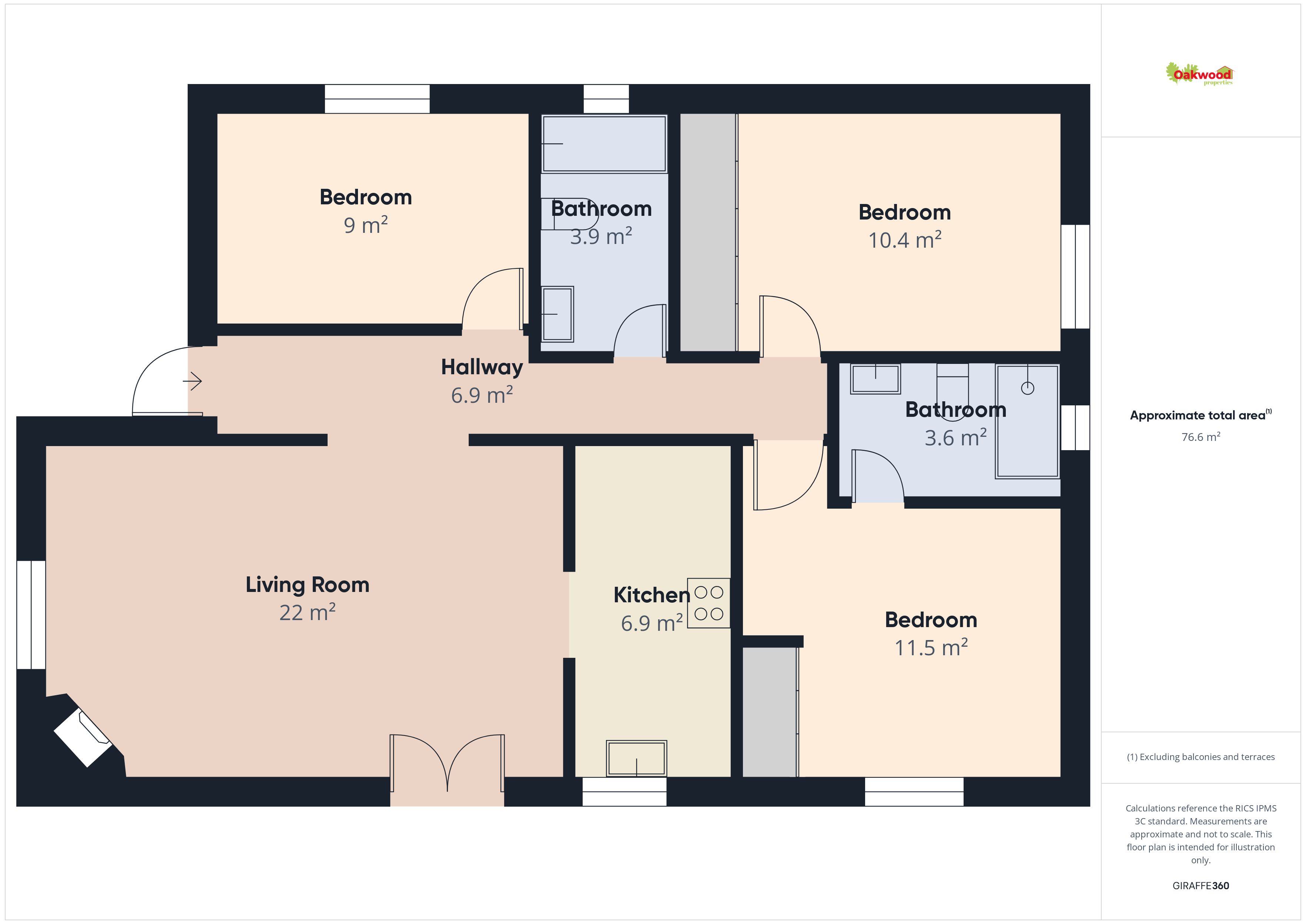 De woning beschikt over drie ruime tweepersoonsslaapkamers, waaronder een royale hoofdslaapkamer met een eigen en-suite badkamer. Daarnaast is er een familiebadkamer, ideaal voor gezinnen of gasten.
